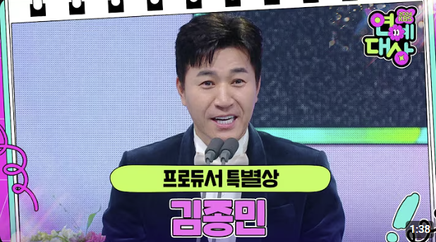 김종민의 커리어에서 빼놓을 수 없는 순간은 2016년 KBS 연예대상 수상이다. ‘1박 2일’에서의 꾸준한 활약과 진솔한 모습으로 유재석, 신동엽 등 쟁쟁한 후보들을 제치고 대상을 차지했다. 수상 소감에서 그는 “내 능력에 비해 과분한 상”이라며 눈물을 흘렸고, 유재석, 강호동, 팬들에게 감사를 전하며 뭉클한 감동을 선사했다. 이 상은 그의 헌신과 노력에 대한 최고의 보상이었다.