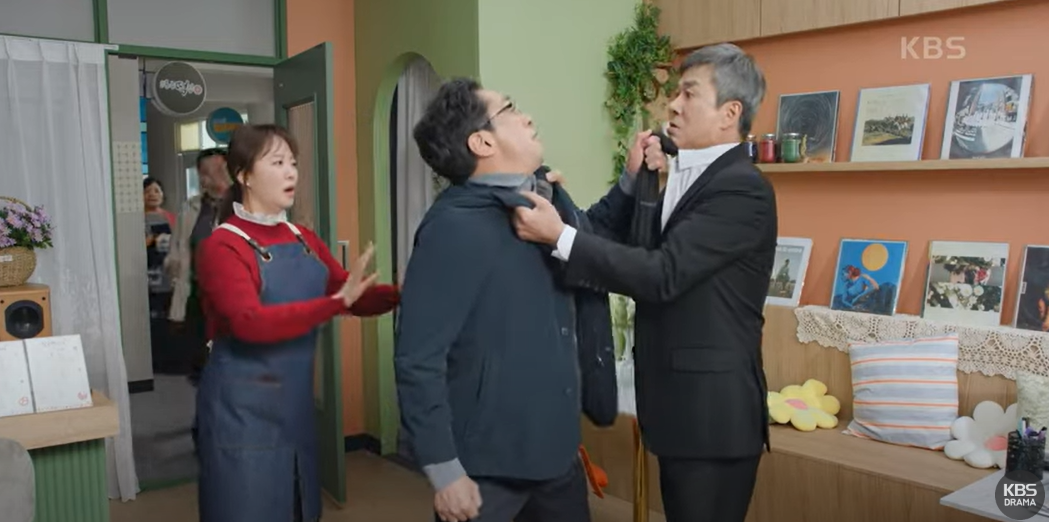 1화의 핵심 갈등은 한무철이 김대식의 치킨집 바로 옆에 프랜차이즈 치킨집을 입점시키는 결정에서 시작됩니다. 김대식은 이 소식을 듣고 충격에 빠집니다. 그는 대운빌딩 1층에서 10년 넘게 치킨집을 운영하며 한무철과의 우정을 믿었지만, 한무철은 “사업은 사업”이라며 냉정하게 선을 그으며 “월세를 더 낼 수 있으면 말해”라고 덧붙입니다. 이 장면에서 김대식의 분노와 배신감이 폭발하며, 두 사람의 40년 우정에 금이 가는 순간이 강렬하게 그려집니다.